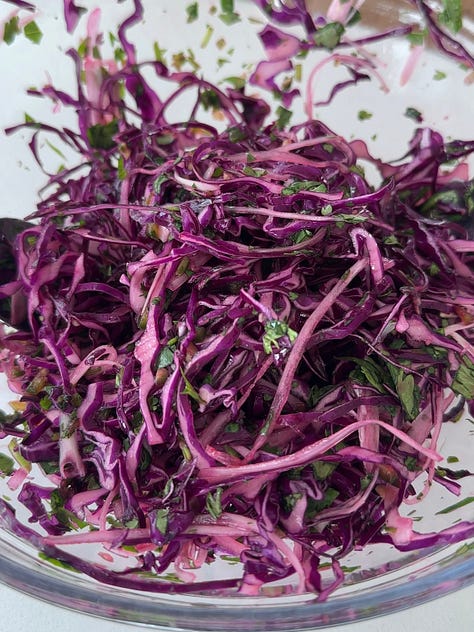 w/ purple cabbage slaw + a creamy cilantro lime sauce