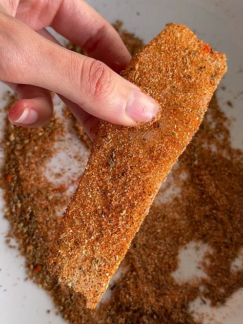 Cod is my favourite fish to use for this as it’s super tender, but halibut or tilapia will also work. You can prep all of the components in advance as everything stores well in airtight containers in the fridge. The fish can be cooked, stored for 2-3 days, and eaten cold on the tacos. Alternatively, you can coat it in the spices, store in the fridge and cook the next day (raw fish can only be stored in the fridge for 1-2 days max, though I’d err on the side of one day). Otherwise, just heat up the tortillas and assemble when you’re ready to serve!