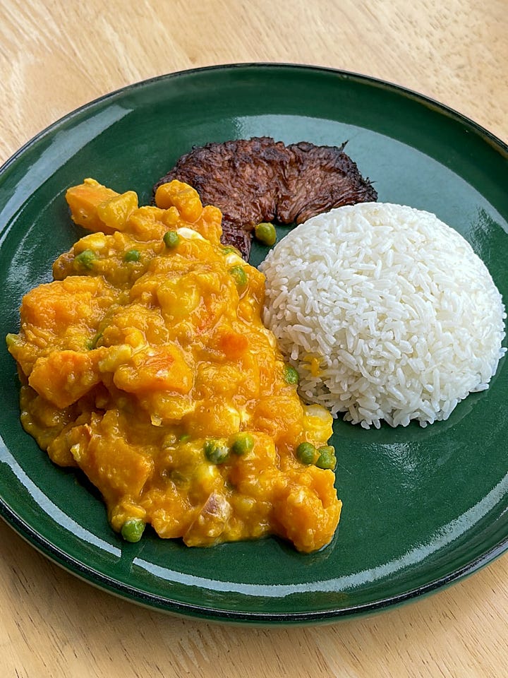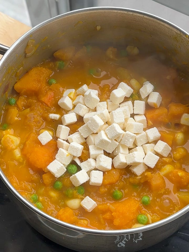 1/2 red kuri squash (700g), chopped into 1” cubes (sub kabocha squash, buttercup squash, pumpkin or Peruvian zapallo if you have it)
