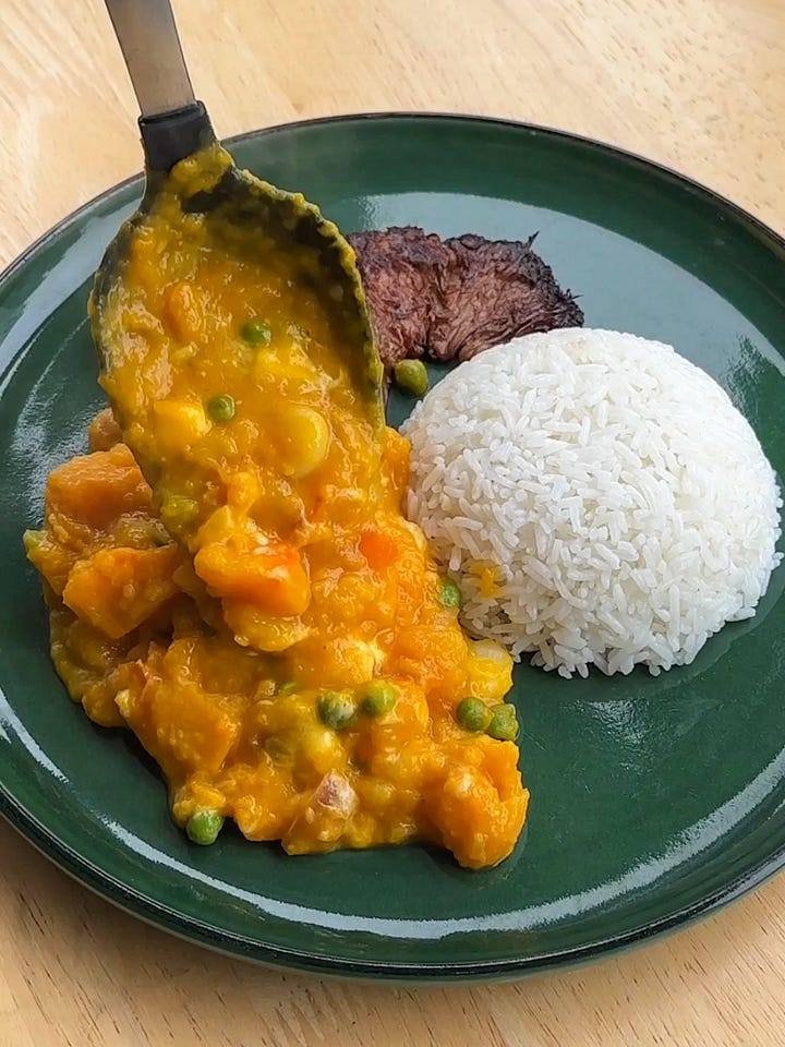 Hello friends. I’m adding another dish to the Peruvian recipe roster and this one is easily in the top 3. It’s a squash stew, otherwise known as Locro de Zapallo, and it comes together with simple ingredients and in a single pot. I nearly forgot about this dish but when I was doing my research, the nostalgia flooded in and I suddenly had very clear memories of my mom making this for my sisters and I as kids.